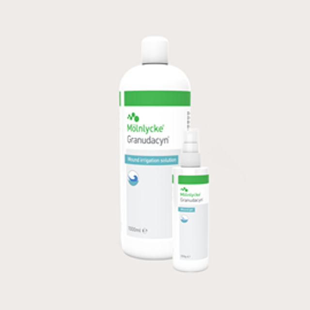 As well as being used for irrigation purposes, Granudacyn Wound Irrigation Solution can be used to keep wounds moist and to help loosen bandages and dressings, making them easier and less painful to remove. Download "Powerful wound cleanser and gel that aid healing - Clinical benefits of Granudacyn".