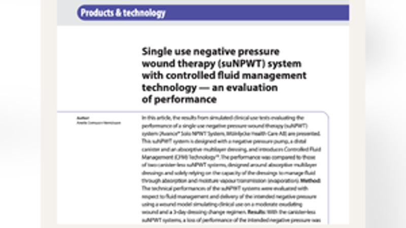 Single use negative pressure wound therapy (suNPWT) system with controlled fluid management technology — an evaluation of performance. (2021)