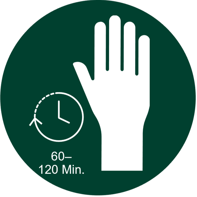 Bei jedem Eingriff sollte das Operationsteam in Betracht ziehen, die Handschuhe in regelmäßigen Abständen von 60 bis 120 Minuten zu wechseln. Bei bestimmten Eingriffen und natürlich nach einer Perforation werden zusätzliche Handschuhwechsel und/oder kürzere Intervalle empfohlen.