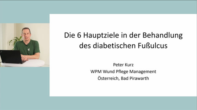 In der Reihe "Kurz erklärt mit Peter Kurz" geht es heute um die 6 Hauptziele bei der DFU-Behandlung. Nehmen Sie sich diese 5 Minuten Zeit für das spannende Thema Diabetisches Fußsyndrom! "Kurz erklärt mit Peter Kurz": die 6 Hauptziele in der Behandlung des Diabetischen Fußulcus