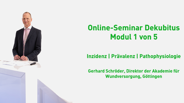 In dieser neuen Online-Seminar-Reihe behandelt Gerhard Schröder das Thema Dekubitus auf anschauliche Weise mit interessanten Fallbeispielen und hilfreichen zusätzlichen Informationen. Dieser erste Teil der Reihe widmet sich in kurzweiligen 25 Minuten den Themen Inzidenz, Prävalenz und Pathophysiologie. Erfahren Sie hier den aktuellen Stand zur Definiton eines Dekubitalulcus, zu der Häufigkeit des Auftretens und zu den Faktoren, welche die Entstehung beeinflussen können. Dekubitus. Wie entsteht er - und so vergeht er... Teil 1: Inzidenz, Prävalenz, Pathophysiologie