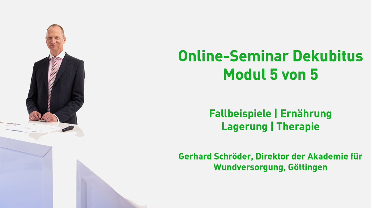 In dieser neuen und kostenfreien Online-Seminar-Reihe behandelt Gerhard Schröder das Thema Dekubitus auf anschauliche Weise mit interessanten Fallbeispielen und hilfreichen zusätzlichen Informationen.