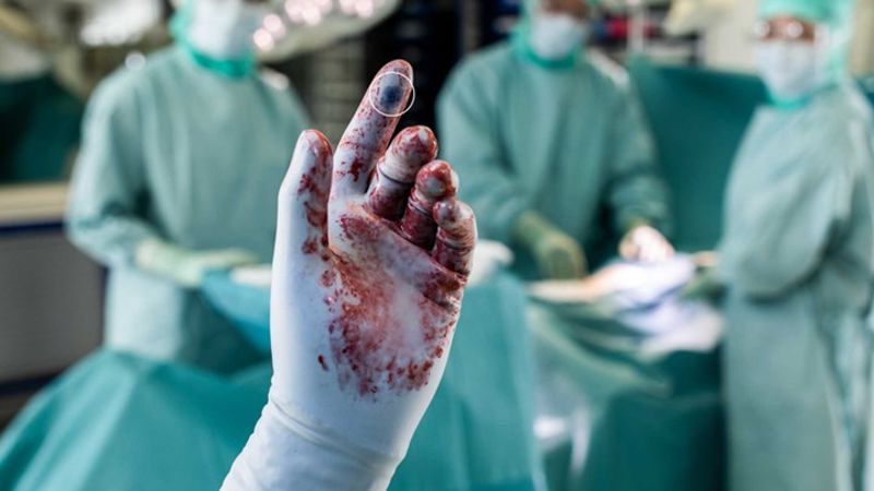 Nadelstiche und andere Verletzungen durch scharfe Instrumente im OP erhöhen das Expositionsrisiko gegenüber durch Blut übertragene Viren1 . Dagegen können doppelte Handschuhe mit Perforationsindikation helfen.