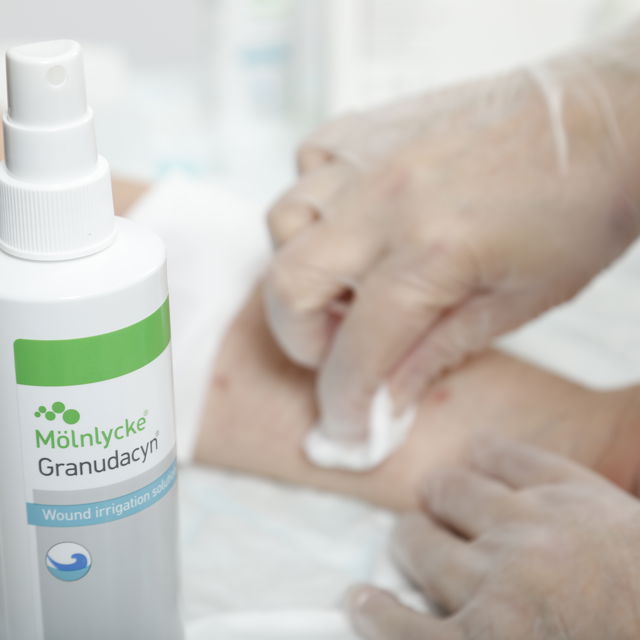 Granudacyn® is a non-cytotoxic wound cleanser that is compatible with sensitive tissues.