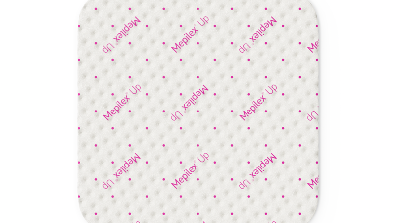 Mepilex Up is a highly absorbent, low-profile soft silicone foam dressing that’s intended for a wide range of acute and hard-to-heal wounds with low to high wound fluid such as leg and foot ulcers, pressure injuries and traumatic wounds.