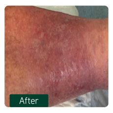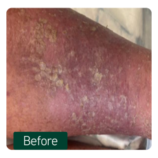 - Historically, the patient had a low tolerance to mechanical debridement, particularly when addressing areas of marked hyperkeratosis limiting the extent of treatment that could be performed in a single session.