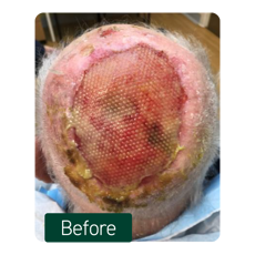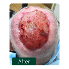 - Due to the re-occurance of SCC, surgical excision of previous wound borders with application of a synthetic skin substitute (Biodegradable Temporising Matrix (BTM)).