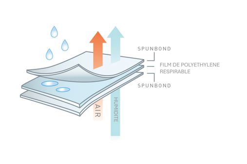 • Spunbond (couches externes) : assure la résistance mécanique du matériau