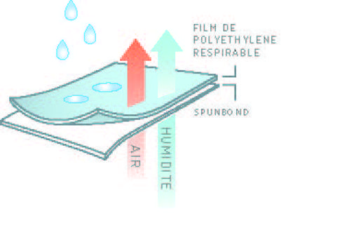 • Spunbond (couches externes) : assure la résistance mécanique du matériau