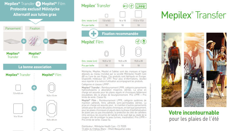 Ce protocole présente les modalités d’utilisation de Mepilex Transfer, ainsi que les associations recommandées avec Mepitel Film.