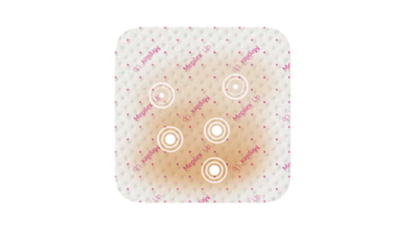 Mepilex Up est une innovation dans la gamme des pansements hydrocellulaires non-bordés développée par Mölnlycke. Cette nouvelle gamme est indiquée pour les plaies aiguës, sans distinction de phase et pour les plaies chroniques dès la phase de bourgeonnement, en traitement séquentiel, localisées dans des endroits difficiles à panser.